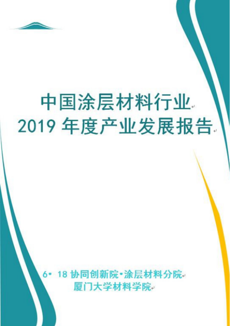 2020年1月,分院已完成《2019年度中国涂层材料行业产业发展分析研究报告》(以下简称:报告)撰写(如图 4),报告内容获得省发改委领导和中国涂料工业协会高度评价,经审核后该报告被中国涂料工业协会会刊《中国涂料》(ISSN 1006-2556/CN11-3544/TQ)录用,并于 2020年第 6、7 期分两期刊登。该报告主要包含四部分内容:
